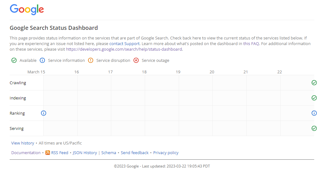 chả liên quan lắm bác, bác chủ thớt cũng lấy thông tin tào lao thật, status dashboard là trang realtime về các chức năng dịch vụ của google, ng dùng có thể vào xem để biết nó có đang lỗi hay hoạt động bình thường, ví dụ như status của mạng cáp quang VN, khi bình thường thì nó là running, khi đứt mạng thì ng ta cập nhật lên đó là đứt mạng, cho ng dân vào xem và biết ranking đc đưa lên dashboard để ng xem biết dc rằng chức năng của gg có hoạt động tại thời điểm đó hay ko, hay gặp lỗi gì